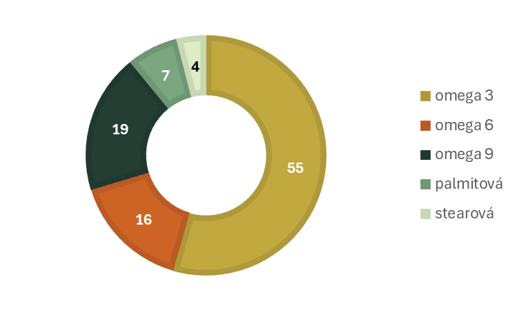 Orientační přehled obsahu nasycených a nenasycených mastných kyselin a bod zakouření