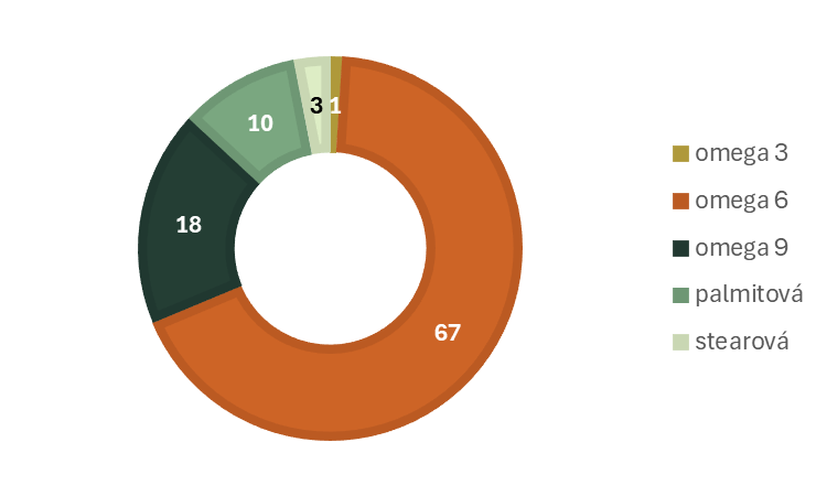 Orientační přehled obsahu nasycených a nenasycených mastných kyselin a bod zakouření