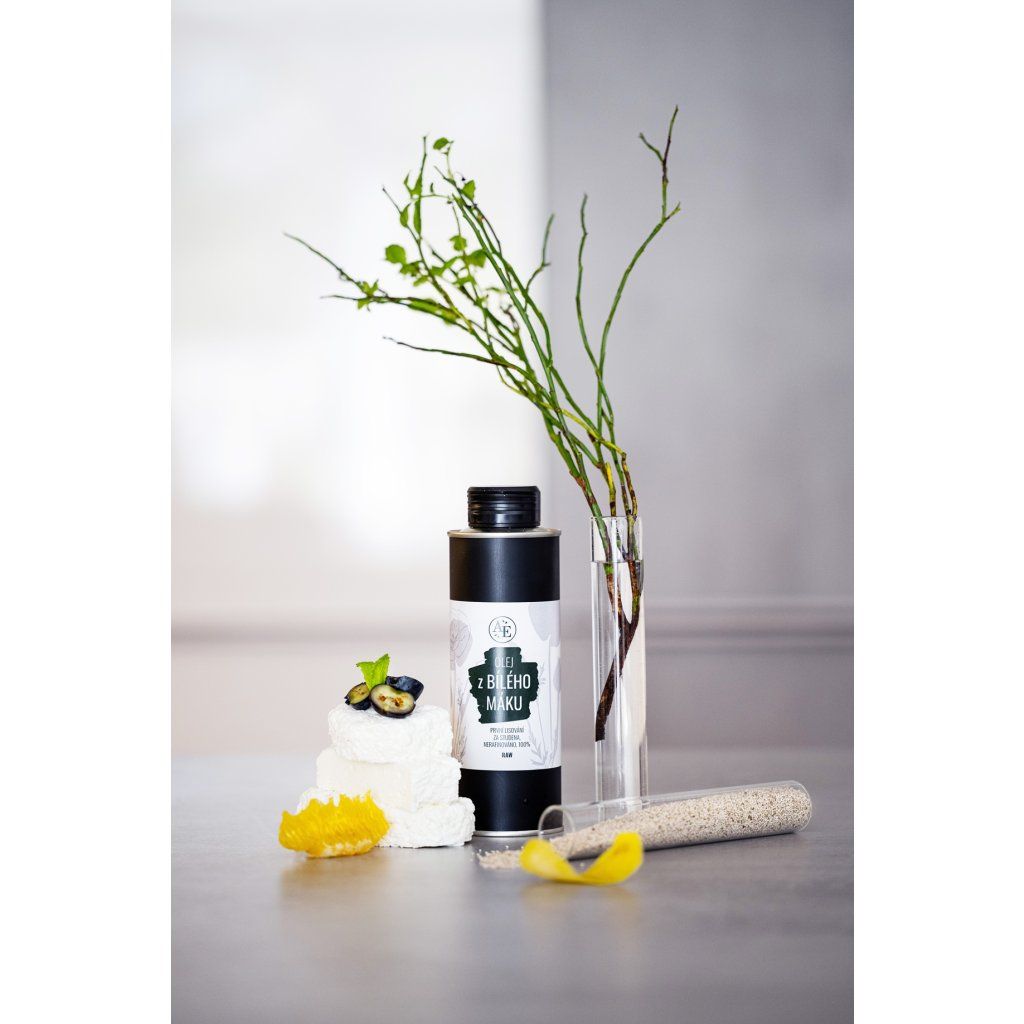 Olej z bílého máku pro Vás lisujeme v RAW kvalitě ze semínek bílého máku vypěstovaných na Vysočině. Olej z bílého máku je velmi dobře stravitelný, má charakteristickou jemnou makovou vůni, ale na rozdíl od máku modrého je v dochuti cítit ořechový nádech. Obsahuje velké množství vitamínu E a minerálních látek (vápník, hořčík, železo). V České republice jsou makové oleje obecně méně známé. Největší tradici mají ve Francii.